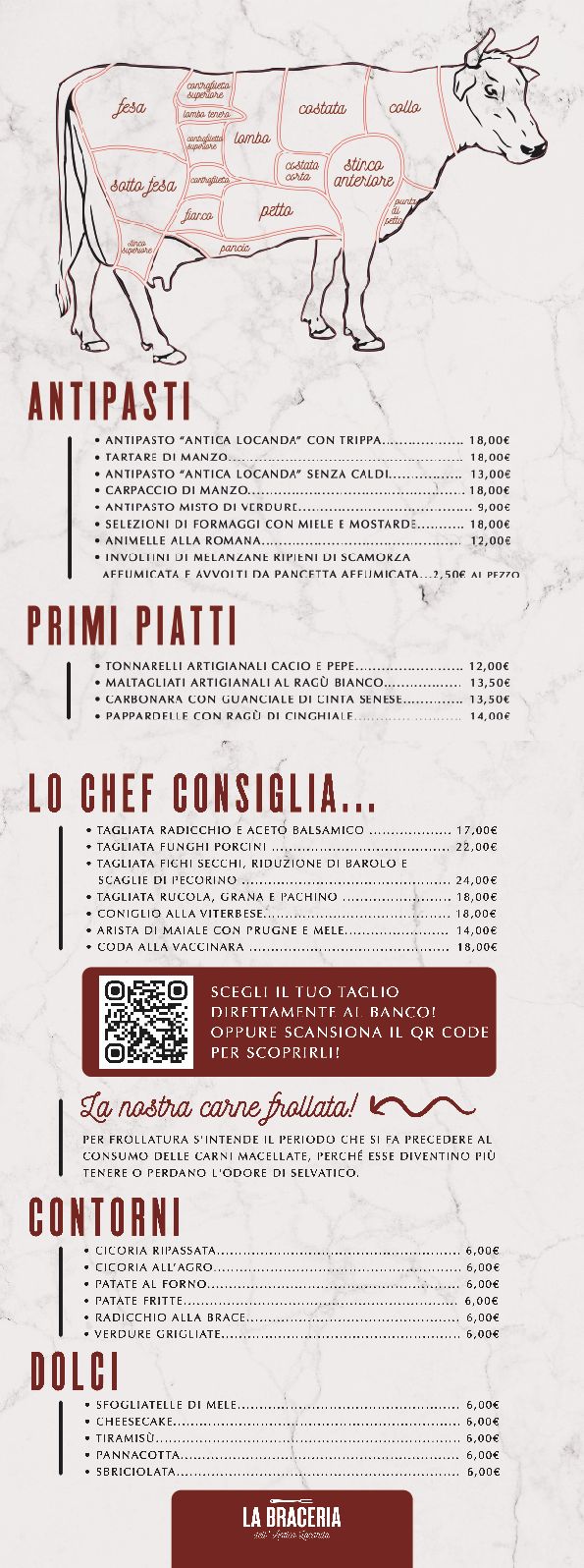 - Costata di manzo alla griglia (minimo 500gr)4.5€/hg